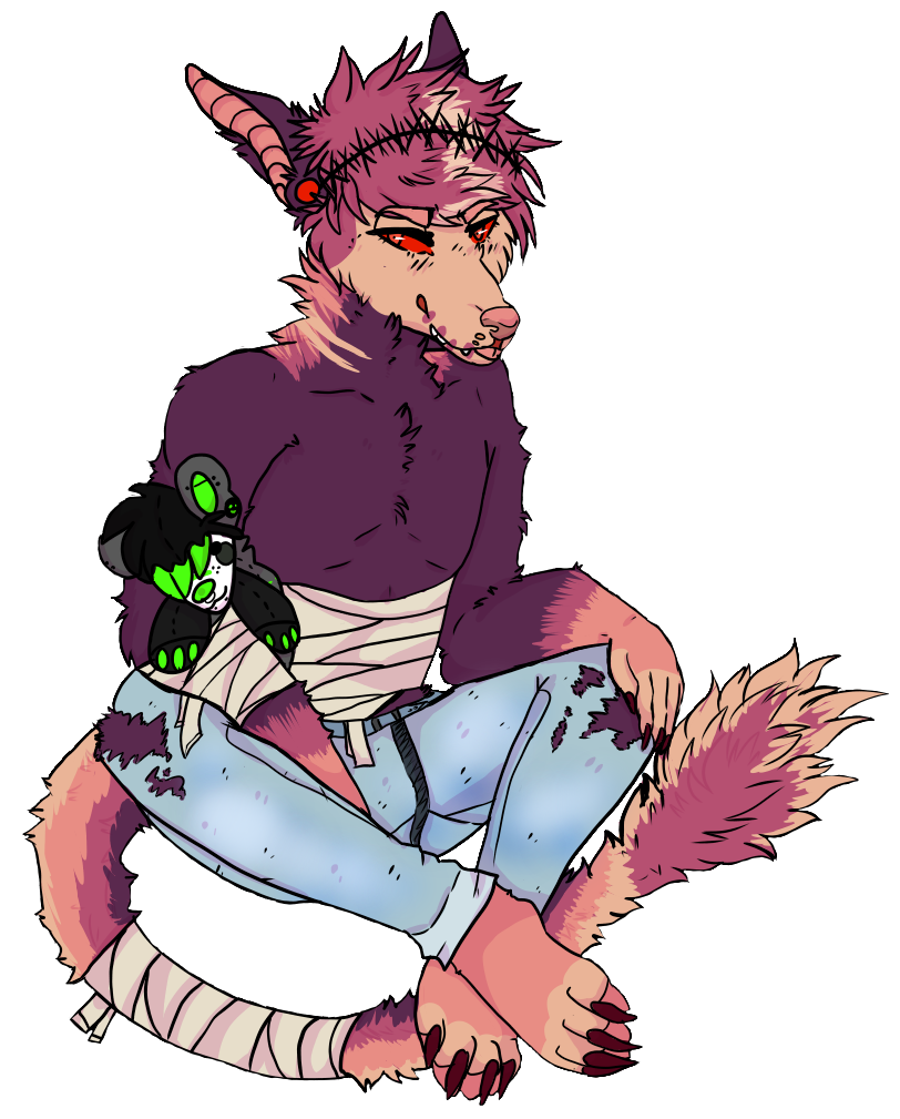 Scars: Like his sister Diabolus also has multiple scars hidden under his fur that are visible when he transforms. The largest starts at the top of the back of his neck and runs down ending just above his tailbone.